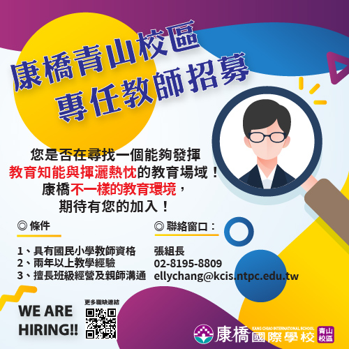 | 徵才資訊 | 康橋國際學校徵聘青山校區教師 | |