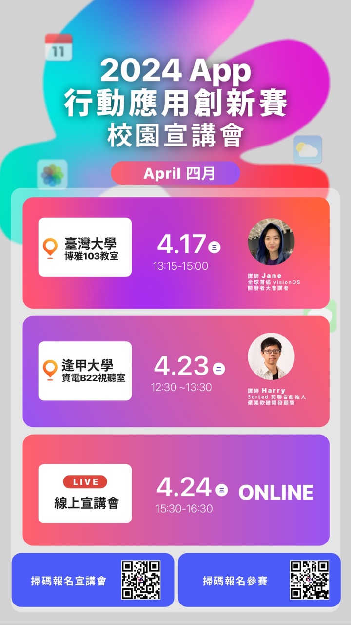 若有興趣參加,歡迎同學於4/24 (三)線上Live宣講會了解相關內容, 以下QRcode可以直接掃描報名呦!