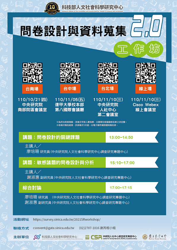 「問卷設計與資料蒐集2.0工作坊」即日起開放報名,