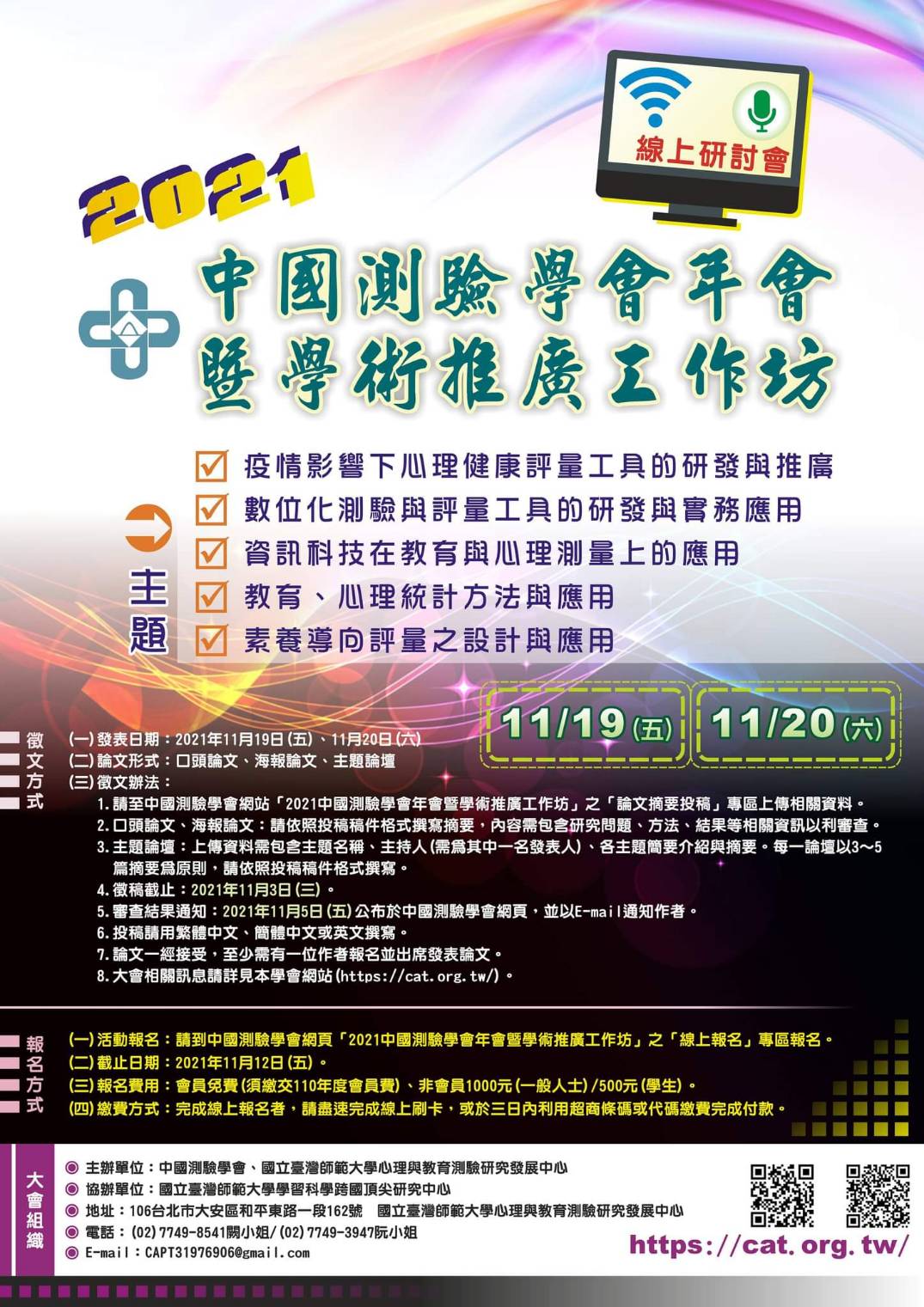 主辦單位:中國測驗學會、國立臺灣師範大學心理與教育測驗研究發展中心