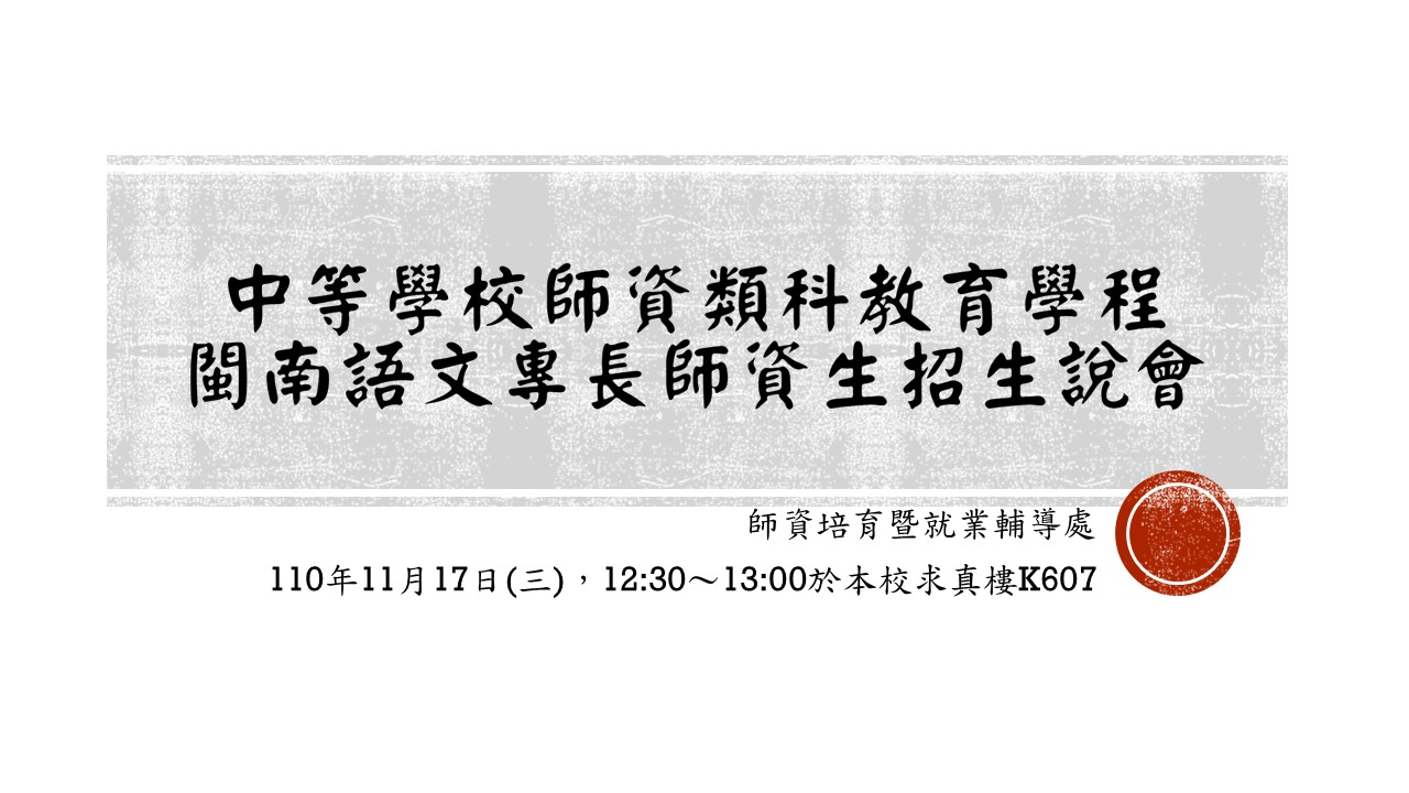 「110學年度中等學校師資類科教育學程閩南語專長師資生招生說明會」