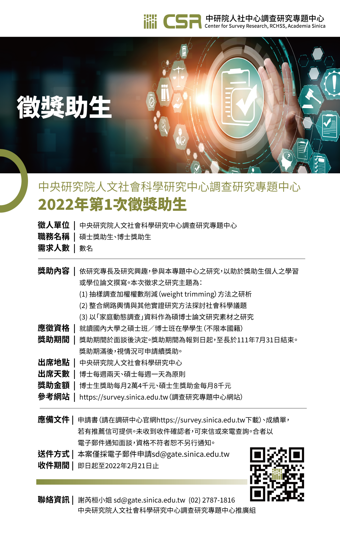 送件方式:本案僅採電子郵件申請sd@gate.sinica.edu.tw